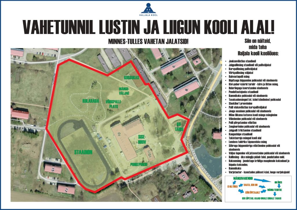 Kõik tegevused toimuvad kooli territooriumil ning õpilased on suunatud liikuma kokkulepitud alal.